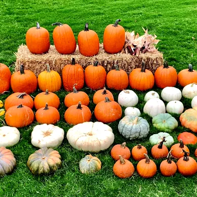 ✨A vibrant mix of large, medium, ghost, pie, and mini pumpkins for rich fall layering